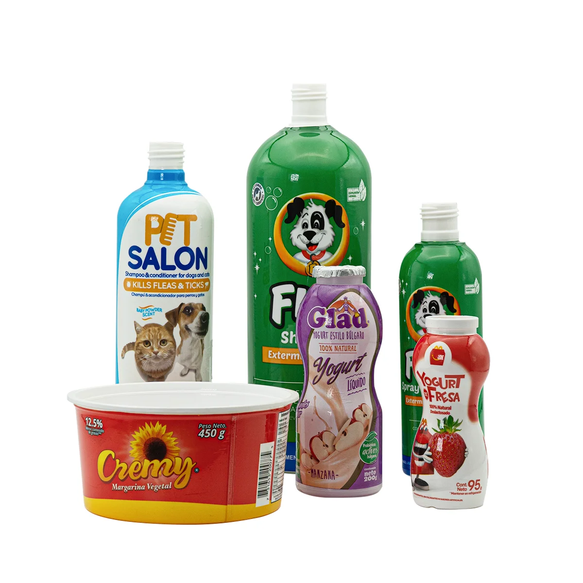 En Termoplástica ofrecemos la colocación de mangas thermoencogibles en diferentes envases, adaptándose a la forma de cada uno de ellos (cónicas, cilíndricas, tarros etc.), dando como resultado una imagen llamativa, captando la atención deseada y protegiendo el producto.