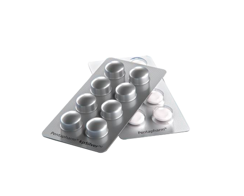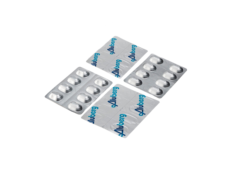 Lámina de tapa para blíster farmacéutico. Cuenta con un primer de impresión universal, único a nivel mundial, y una laca termosellable, ambos fabricados por Aluberg y libres de nitrocelulosa.