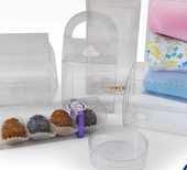 Cajas flexibles y troqueladas en PVC. transparente en diseños y dimensiones apropiados para el producto a empacar siguiendo las expectativas de mercadeo y costo del empaque.